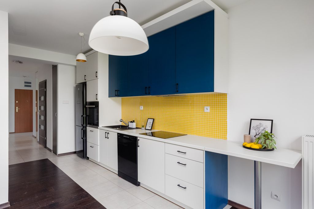 Kuchnia wyposażona jest w nowoczesną zabudowę na wymiar oraz pełny zestaw sprzętu AGD, idealny do codziennego użytku.