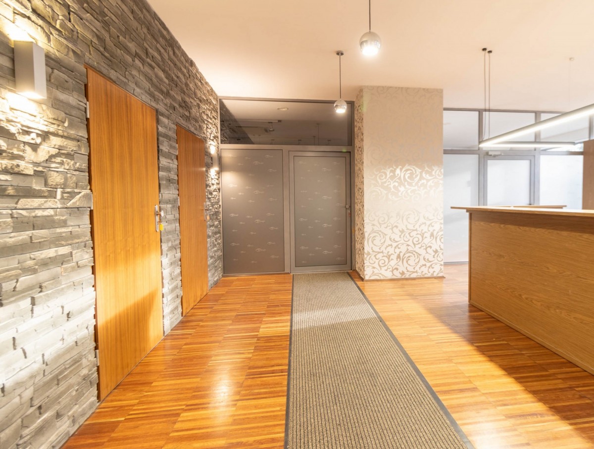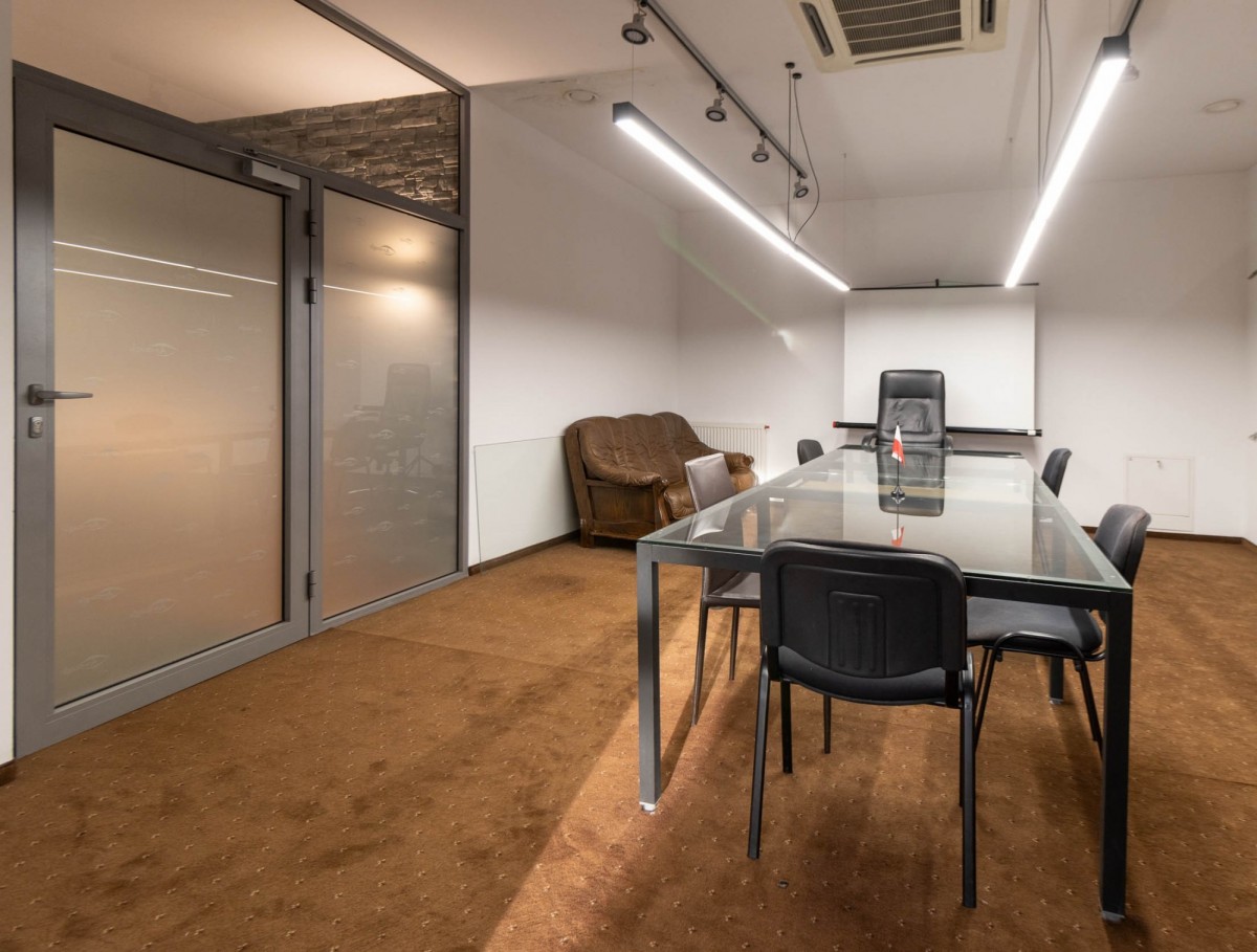 Piętro obejmuje recepcję, dwa gabinety, salę konferencyjną, kuchnię, pomieszczenie socjalne oraz WC.