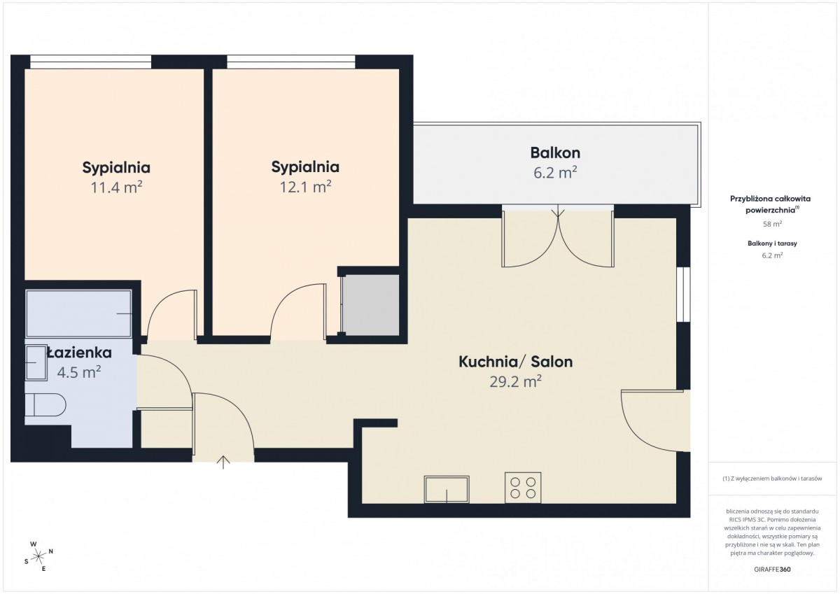 – Balkon (5,81 m²) – idealne miejsce na poranną kawę i odpoczynek na świeżym powietrzu.