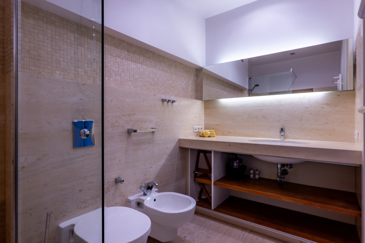 Poziom 1 (najniższy) – główna sypialnia typu master bedroom z prywatną łazienką i garderobą,