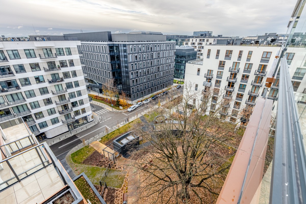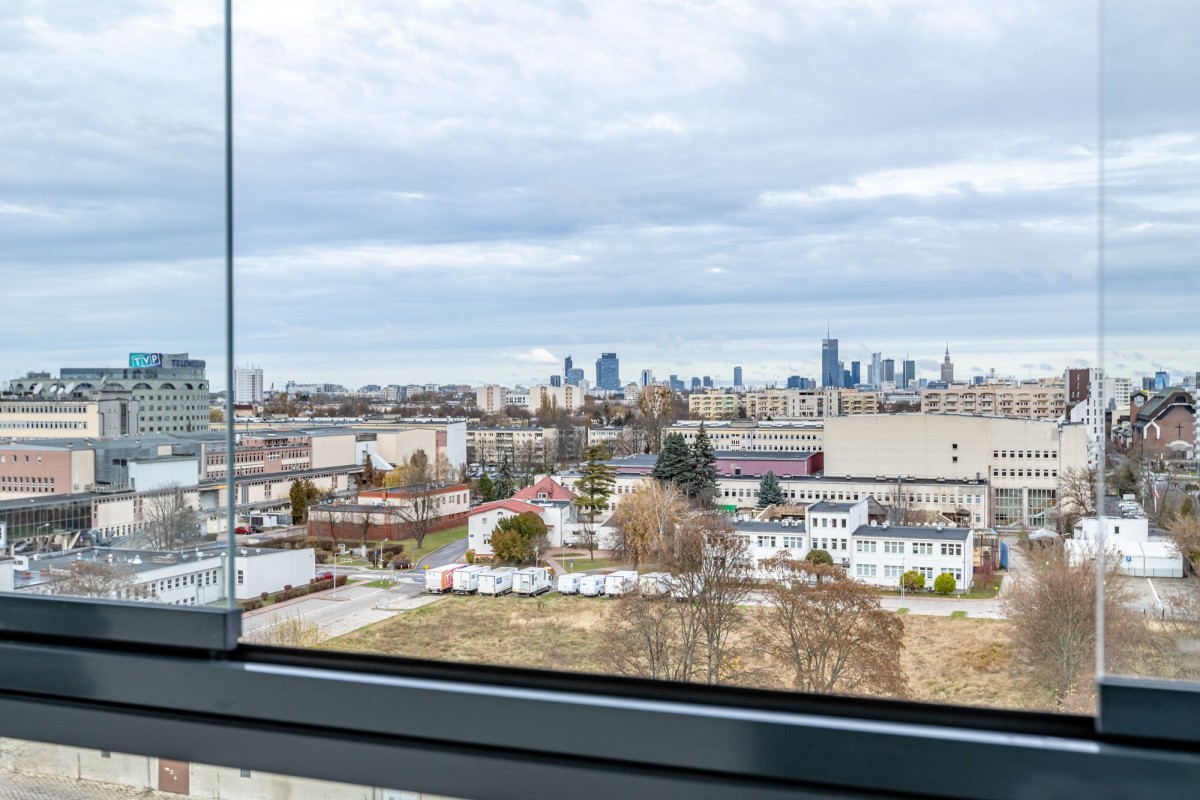 - Penthouse z pięknym widokiem na centrum Warszawy Apartament znajduje się na ostatnim piętrze budynku, co gwarantuje ciszę, prywatność oraz spektakularny widok na Warszawę – zarówno w dzień, jak i wieczorem, kiedy miasto tętni światłami.