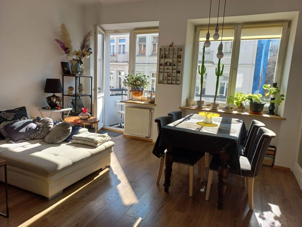 Mieszkanie jasne, przestronne wspaniale doświetlone wysokimi oknami. Znajduje się w niedawno kompleksowo odnowionym i bardzo zadbanym budynku, którego historia budowy sięga 1937 roku.