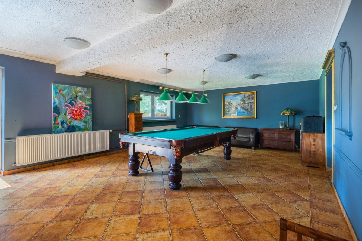 Na parterze znajduje się duża sala bilardowa, która jest idealnym miejscem spotkań. Tutaj też znajduje się siłownia, kotłownia oraz duży dwustanowiskowy garaż.
