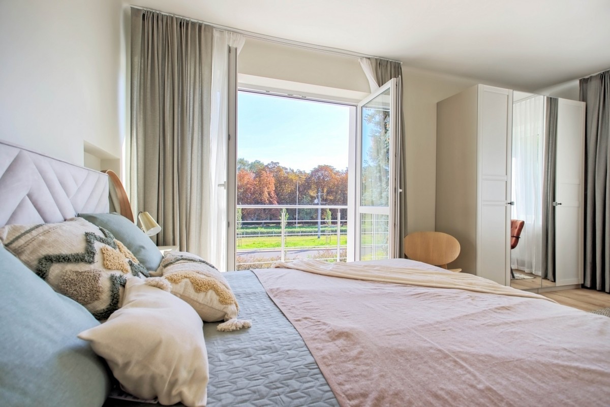 balkon (dostępny z większej sypialni).