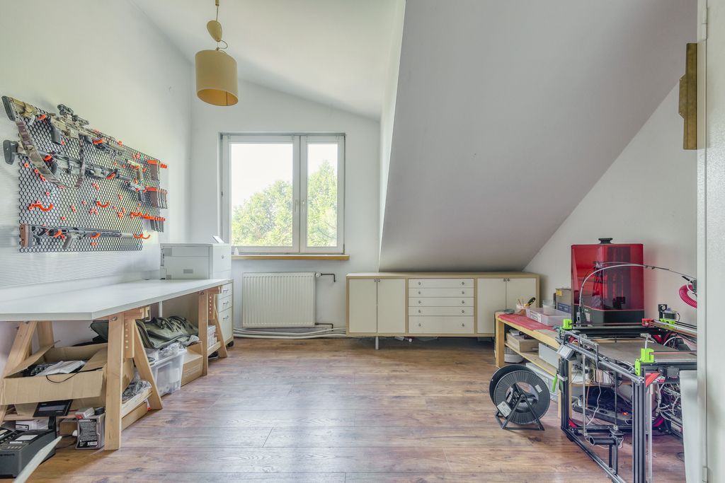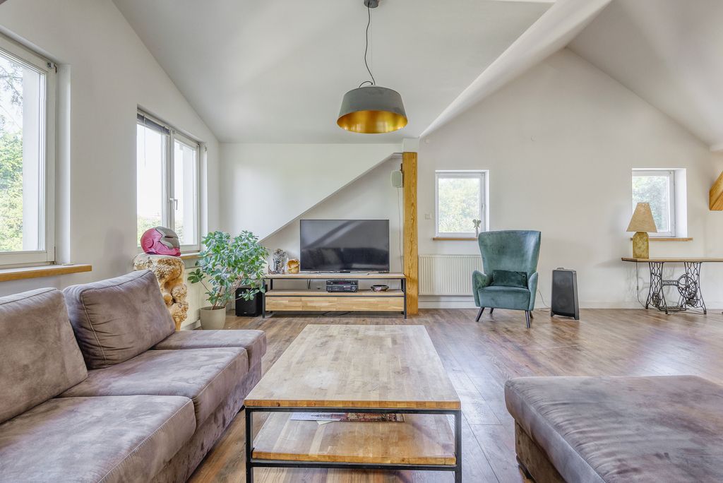 Na sprzedaż niezwykły, wolnostojący dom o powierzchni 344,66 m², usytuowany na malowniczej działce 1207 m² w prestiżowej, cichej i zielonej części Powsina, przy ul. Przekornej.