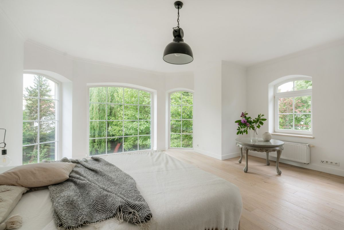 Na piętrze mieści się główna sypialnia z prywatną łazienką, dwie obszerne sypialnie, garderoba oraz pokój kąpielowy. Cały dom został wykończony w wysokim standardzie z wykorzystaniem najlepszych materiałów. Budynek wzniesiono w 2006 roku.