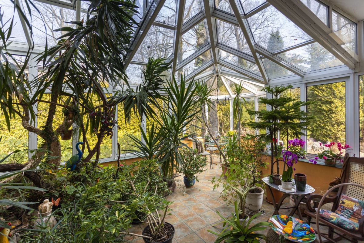 Dom posiada ogród zimowy – idealne miejsce na wieczory przy winie z własnej piwniczki, pełniącej funkcję baru.