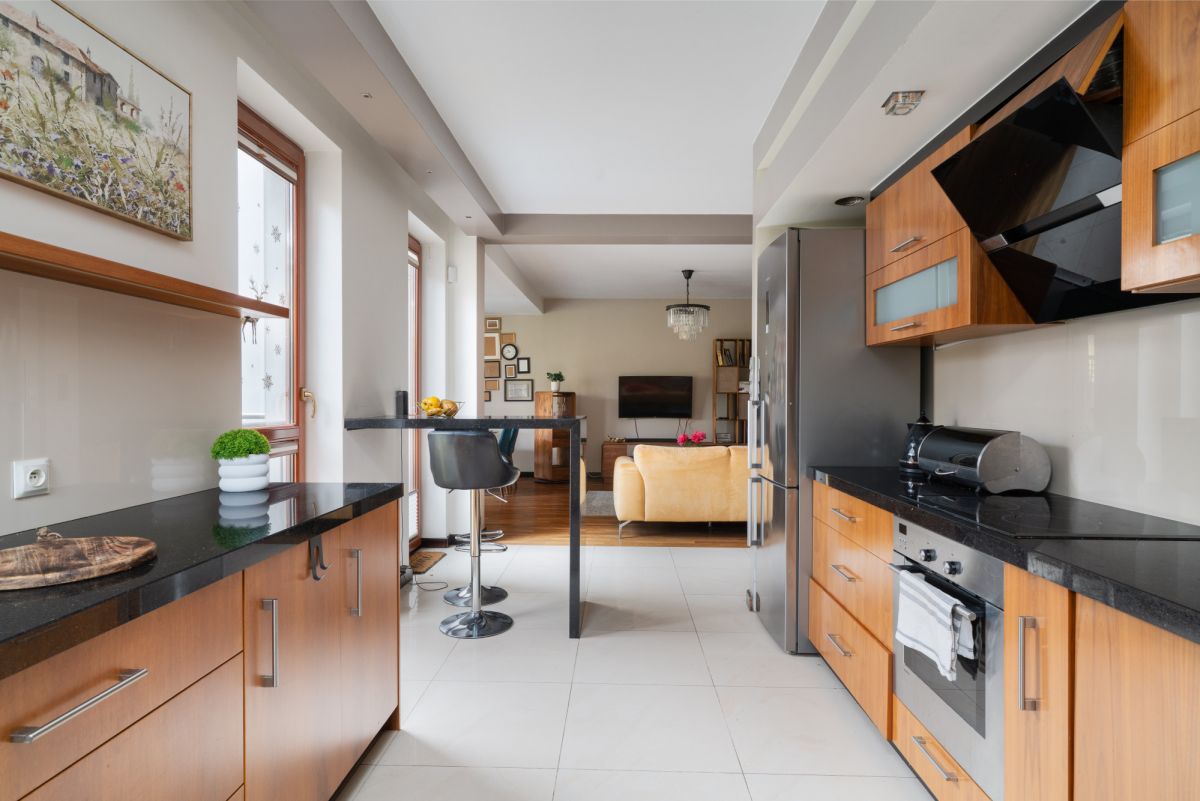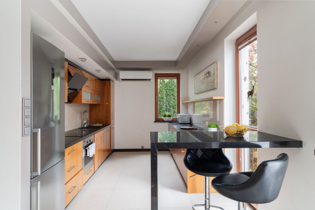 – Kuchnia z marmurowymi blatami i chłodziarką na napoje
