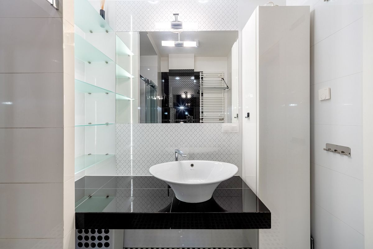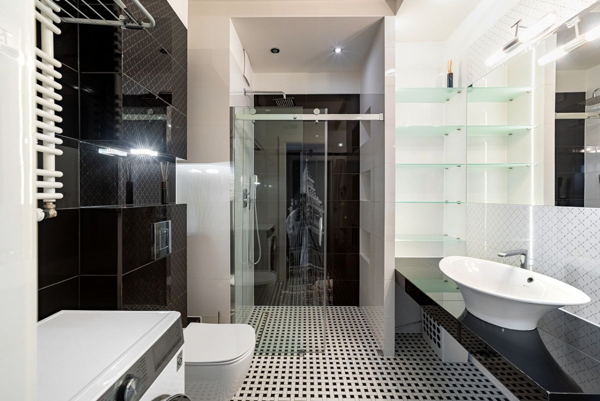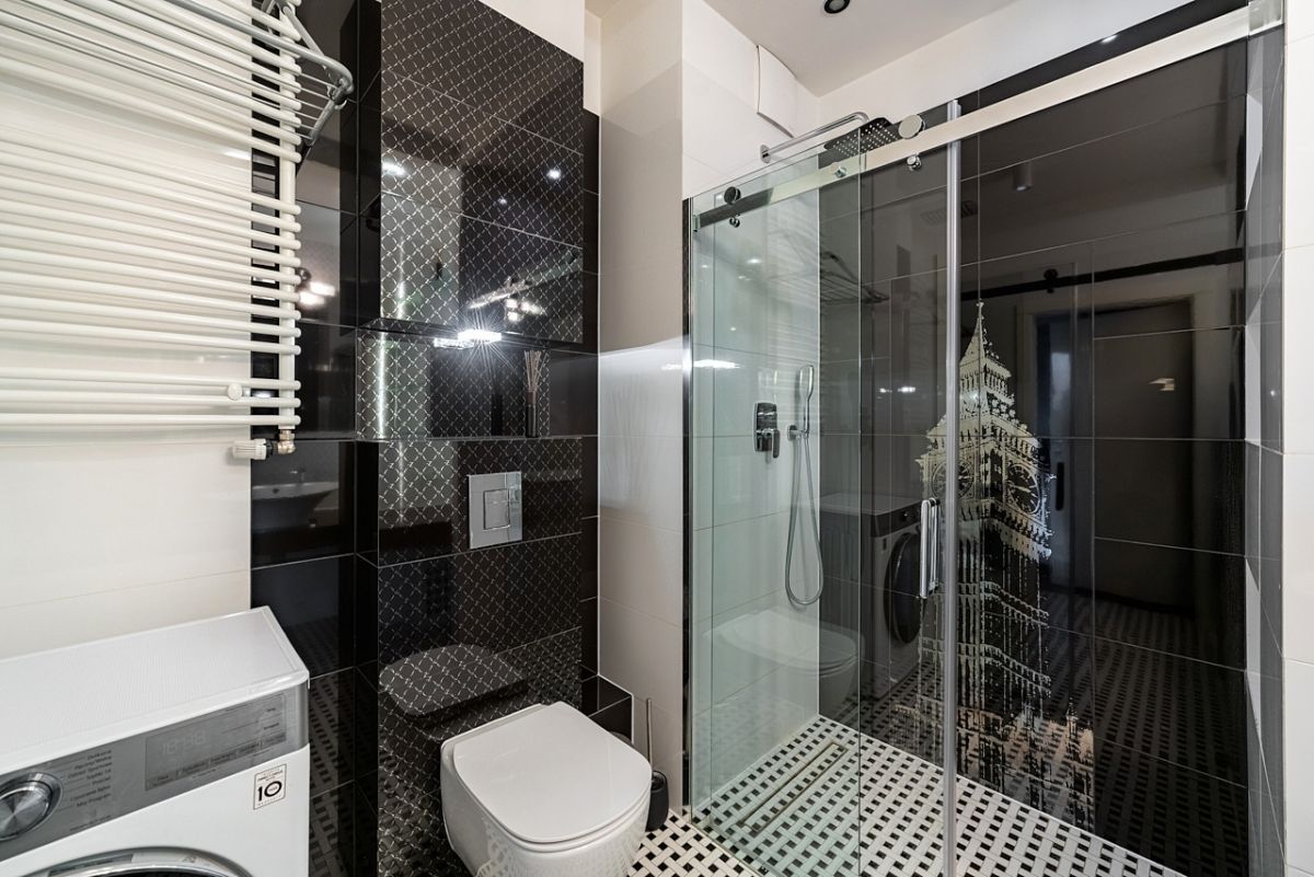 - elegancka łazienka z prysznicem i ogrzewaniem podłogowym,
