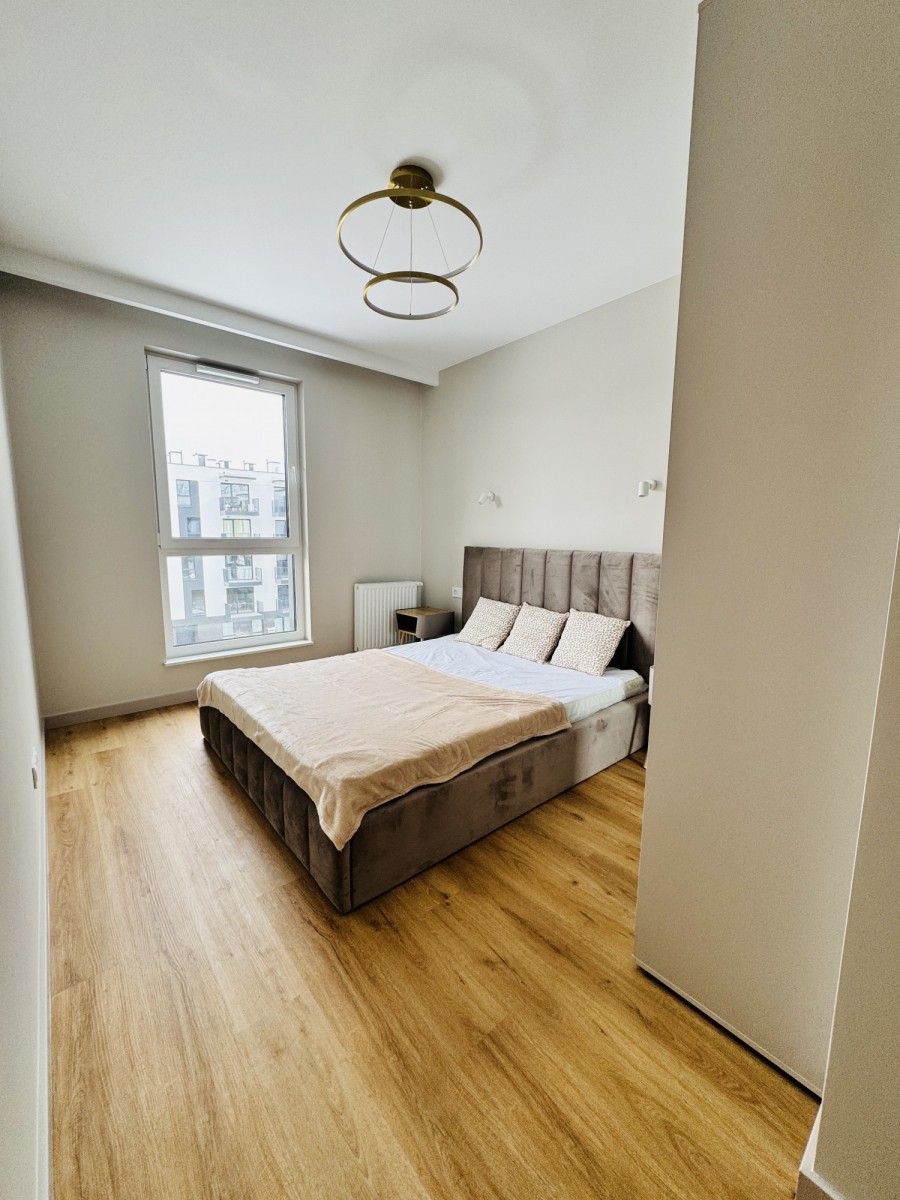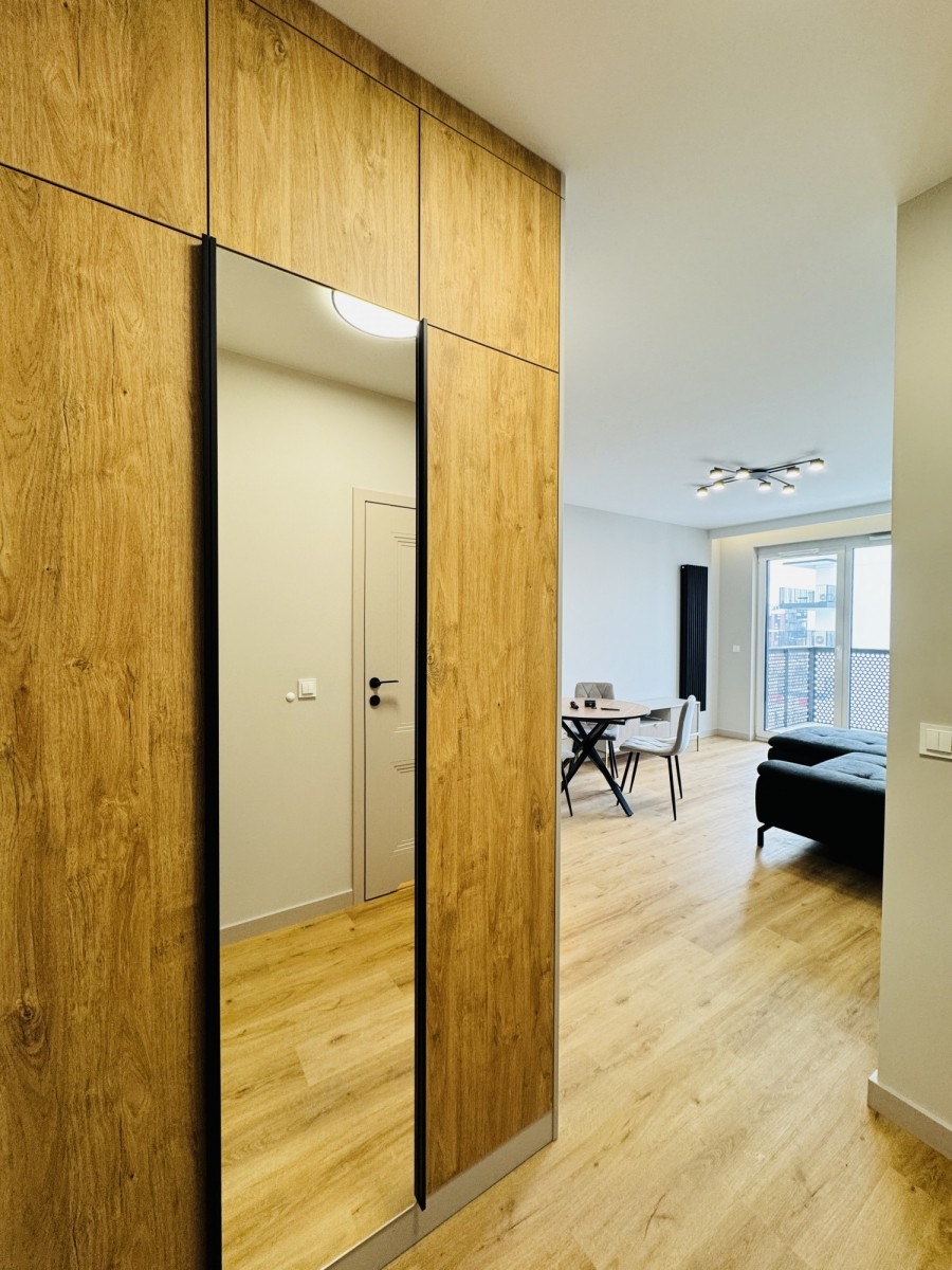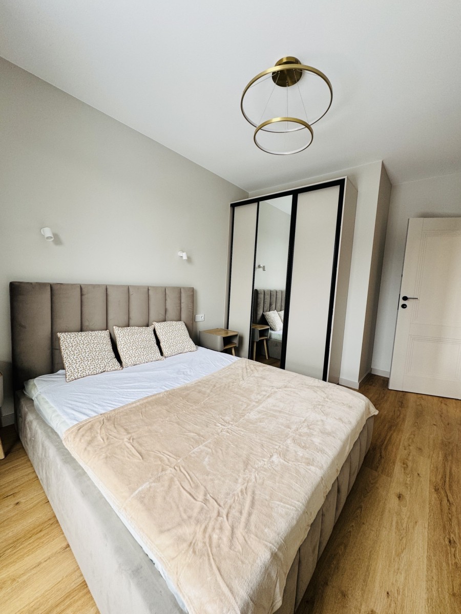 Do wynajęcia nowoczesne, w pełni wyposażone mieszkanie w nowym budynku. Pierwszy najem po świeżym, wysokiej jakości remoncie – wszystko jest nowe i gotowe do zamieszkania bez dodatkowych kosztów.