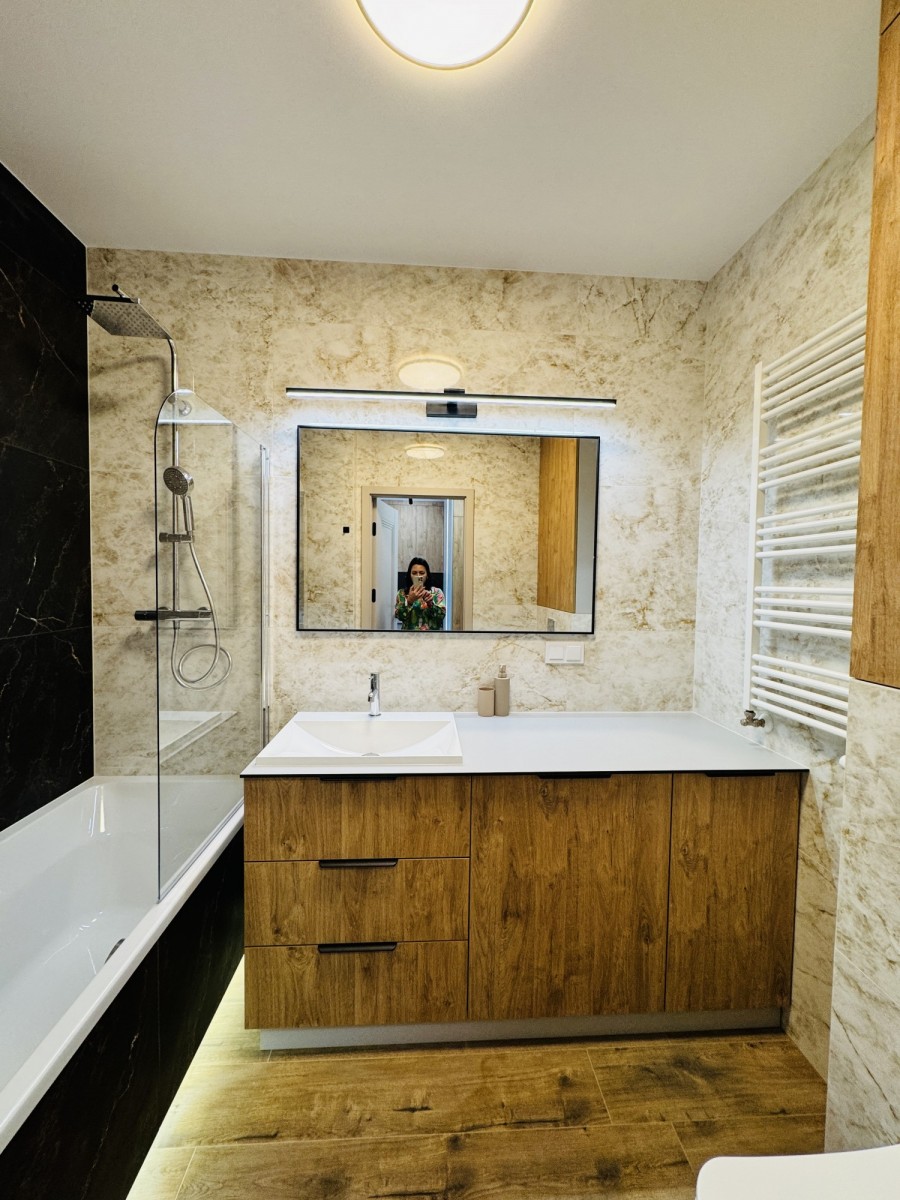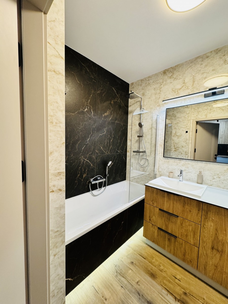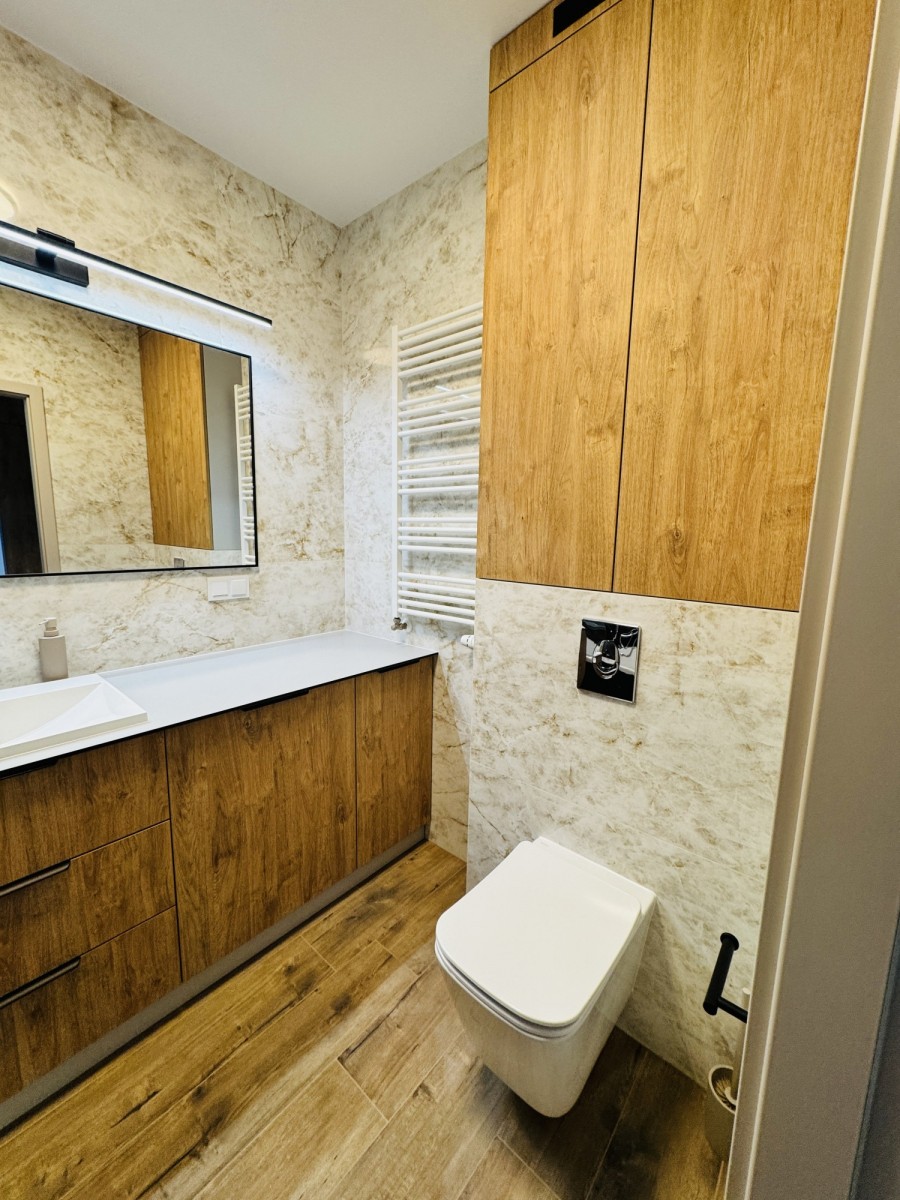 Do wynajęcia nowoczesne, w pełni wyposażone mieszkanie w nowym budynku. Pierwszy najem po świeżym, wysokiej jakości remoncie – wszystko jest nowe i gotowe do zamieszkania bez dodatkowych kosztów.