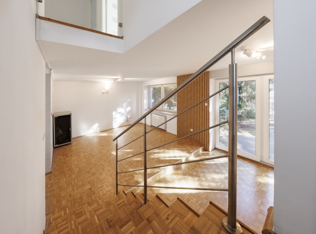 Świeżo po remoncie: Ściany w białych gładziach, na podłogach i schodach odświeżona, wycyklinowana mozaika drewniana (w łazienkach i przedpokoju terakota).