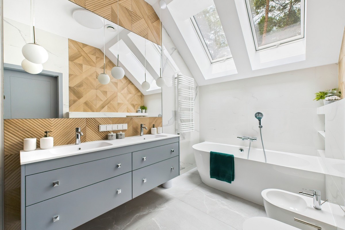• Łazienka z podwójną umywalką i wanną