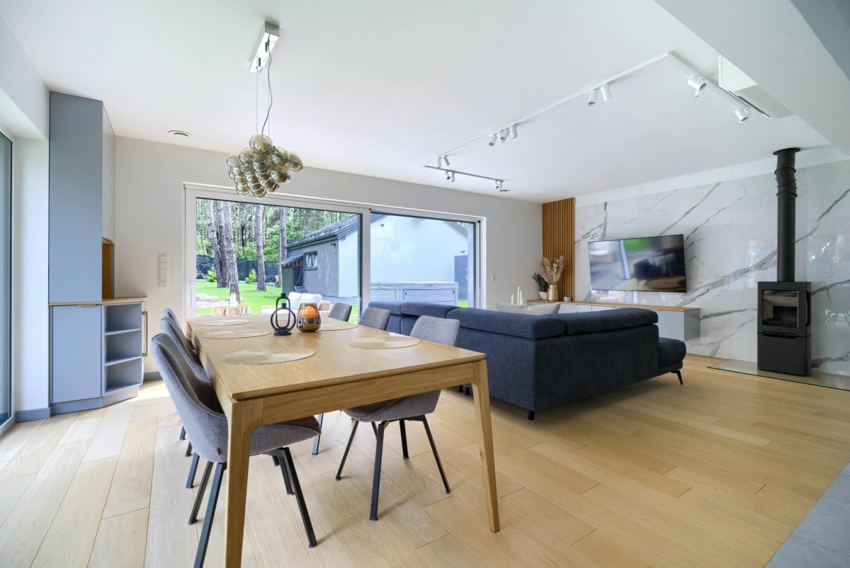 • Salon z jadalnią i kuchnią w otwartej przestrzeni