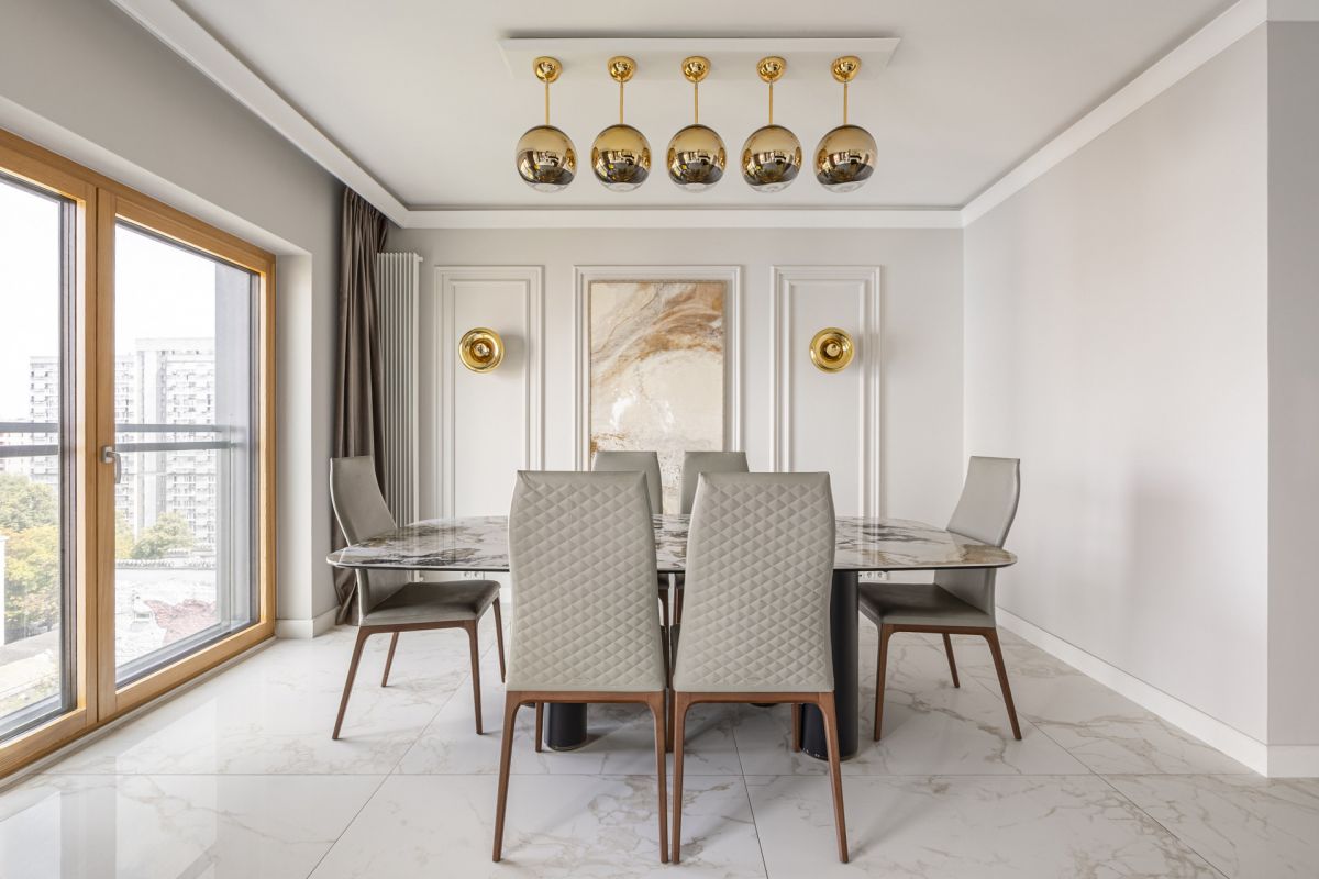 Wykończenie apartamentu cechuje najwyższa jakość materiałów i ponadczasowy styl. Wnętrza zostały urządzone z dbałością o każdy detal: