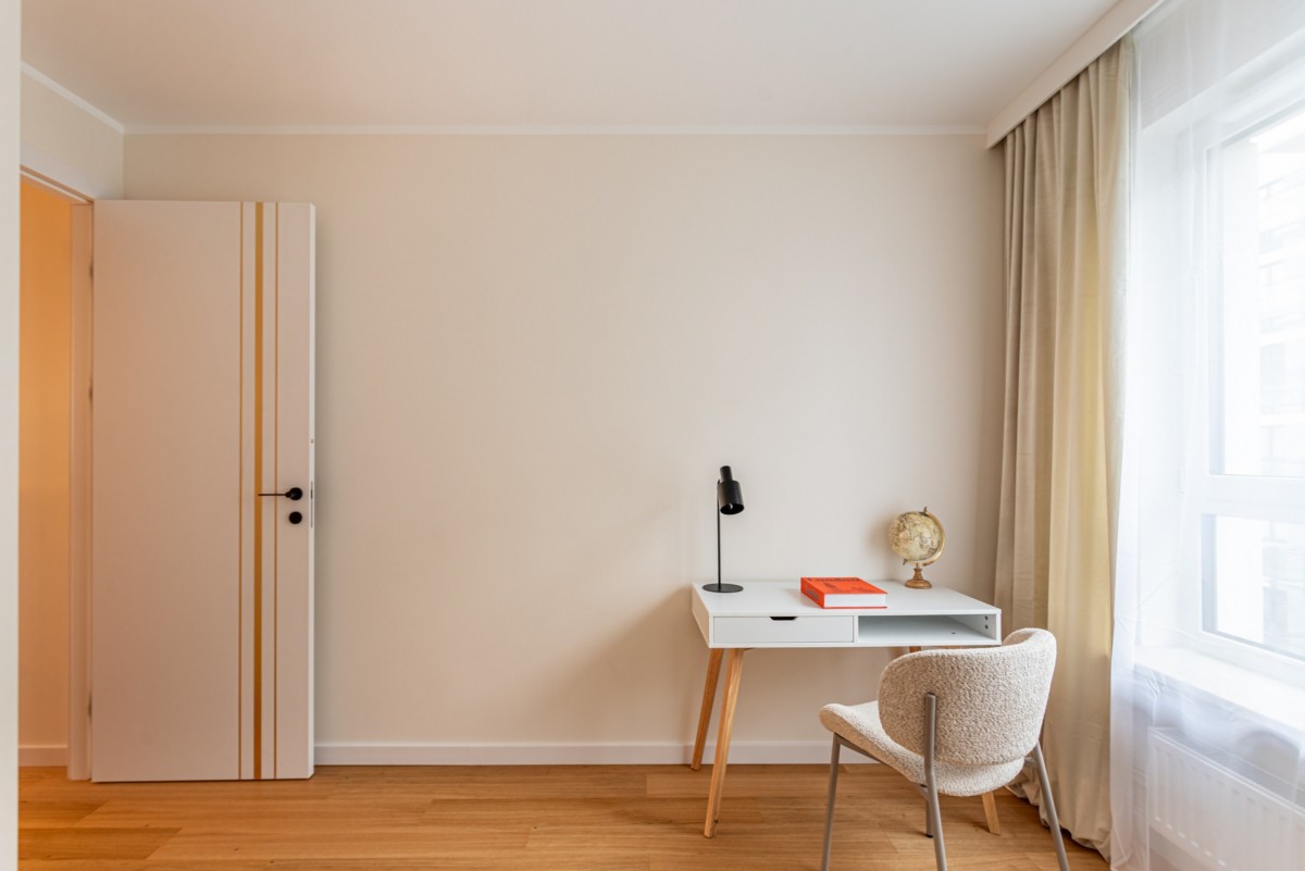 Mieszkanie zostało zaprojektowane tak, aby wykorzystać każdy centymetr powierzchni. Wykończone w wysokim standardzie, z dbałością o detale.