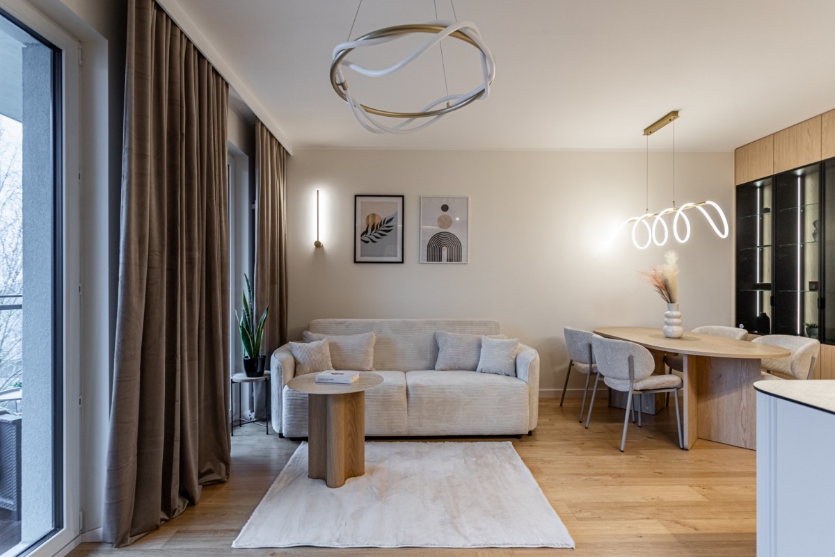 Całość tworzy spójną, elegancką i nowoczesną przestrzeń, gotową do wprowadzenia bez jakichkolwiek dodatkowych nakładów finansowych.