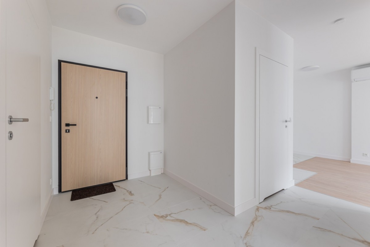 Wnętrze mieszkania wykończone zostało z dużą starannością i dbałością o detale, z wykorzystaniem materiałów wysokiej klasy. Funkcjonalny rozkład pomieszczeń zapewnia wygodę zarówno dla pary, jak i rodziny.