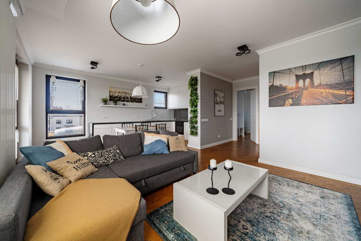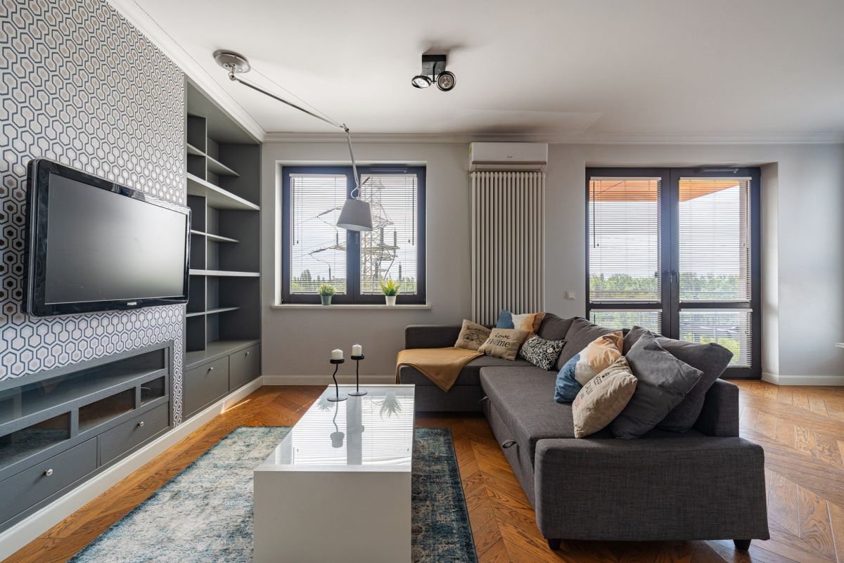 Oferuję na wynajem od 1 maja nowoczesne mieszkanie o powierzchni 55 m2 usytuowane na siódmym piętrze w apartamentowcu. Mieszkanie znajduje się na warszawskiej Woli na ulicy Sztuk Pięknych.