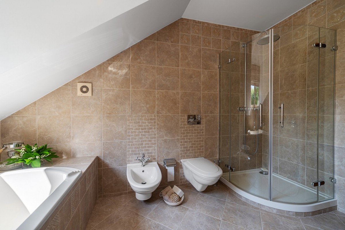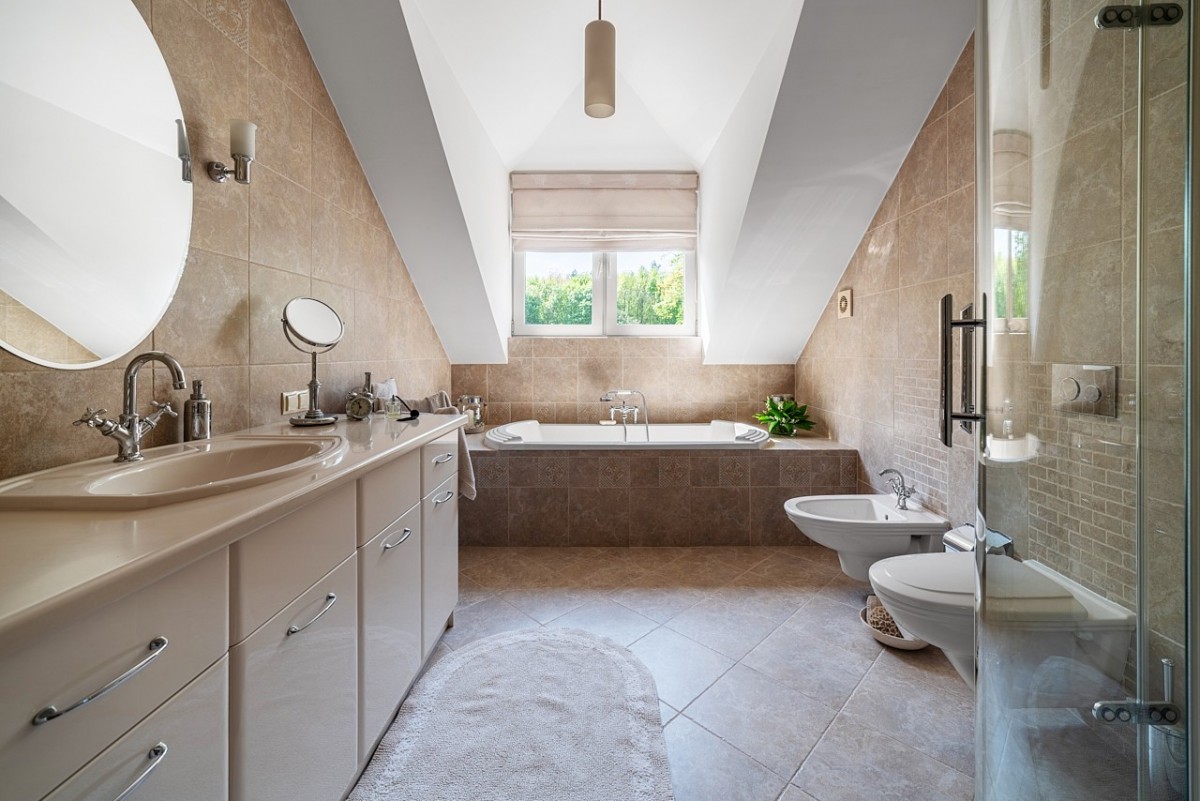 – łazienka z wanną i prysznicem,