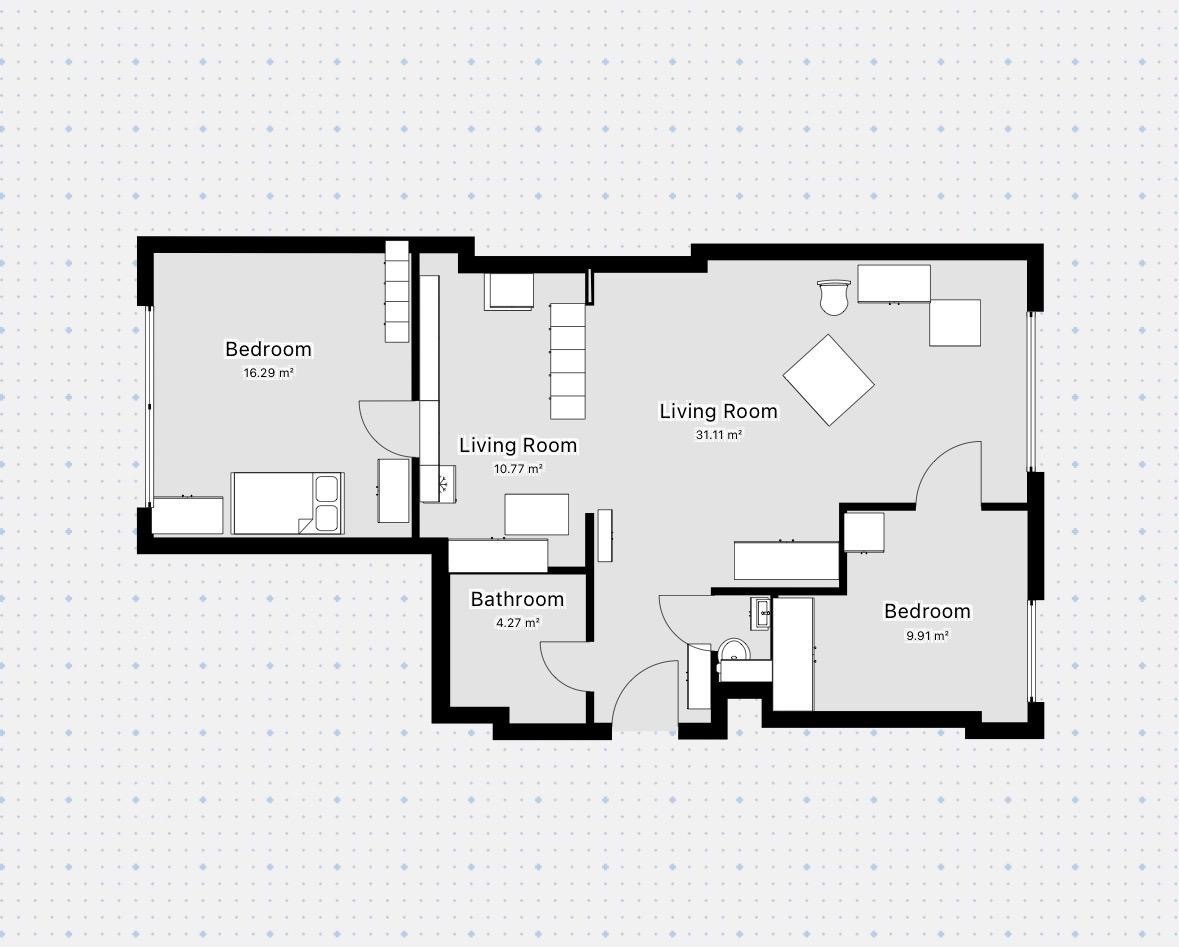 Obecny układ pomieszczeń pozwala na wygodne funkcjonowanie, jednak mieszkanie jest przeznaczone do remontu, co daje możliwość dowolnej aranżacji przestrzeni i dostosowania jej do własnych potrzeb.