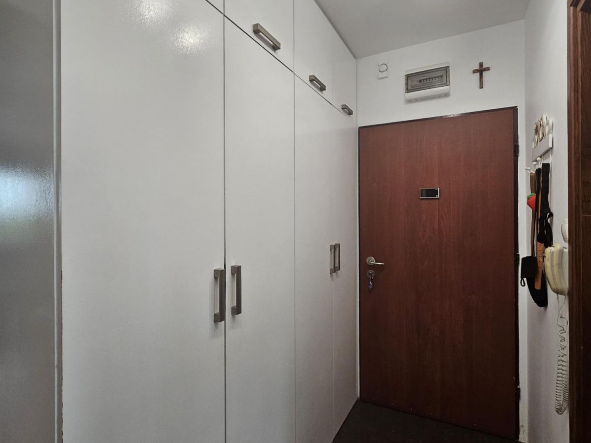 przestronny przedpokój z dużą ilością szaf.