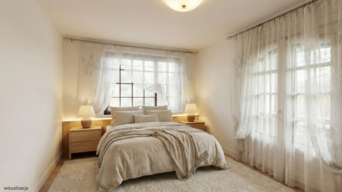 • 2 klimatyczne sypialnie — w tym jedna z balkonem