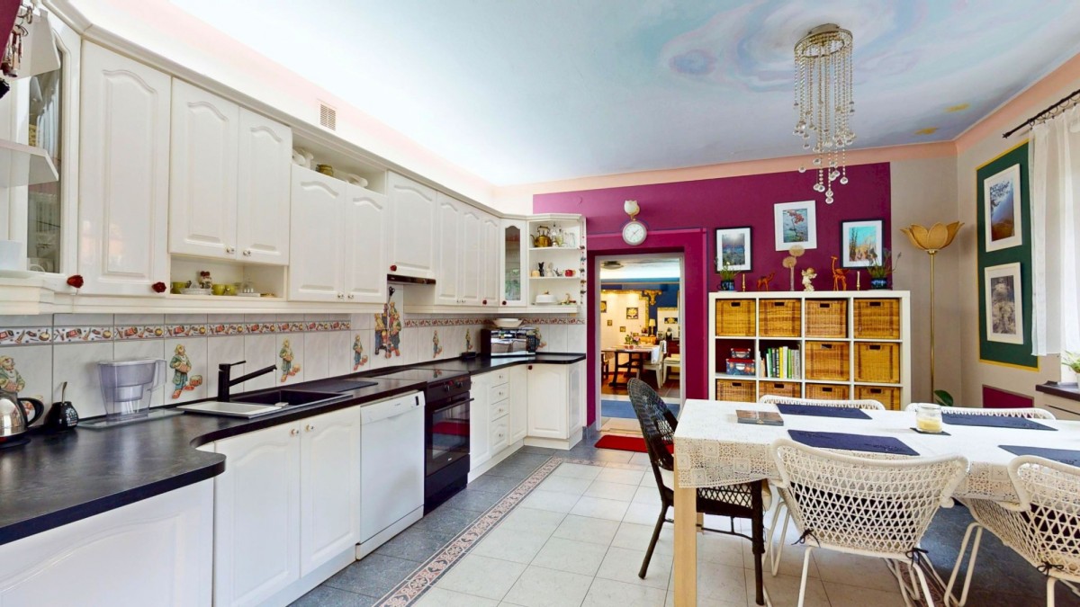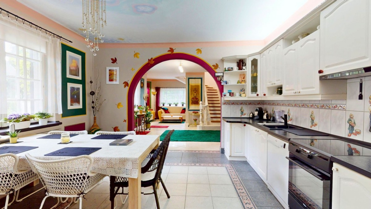 • Dwie kuchnie — jedna z bezpośrednim wyjściem do pięknego, artystycznego ogrodu