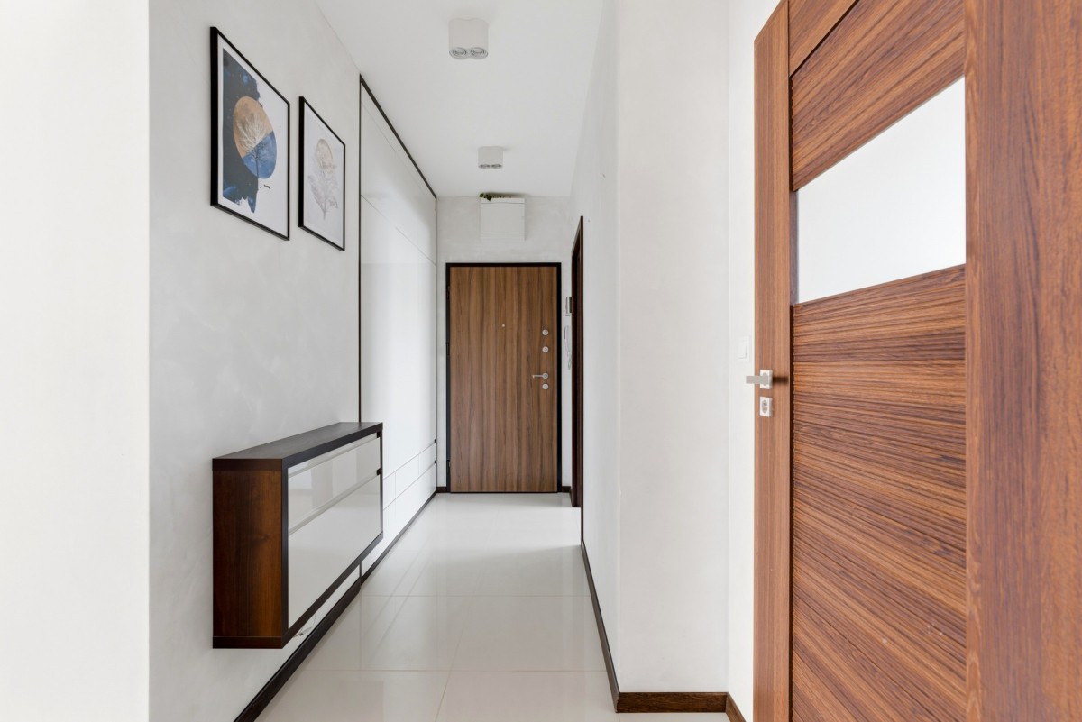 Hol – duża i funkcjonalna szafa wnękowa na wymiar oraz podwieszana szafka – konsola.