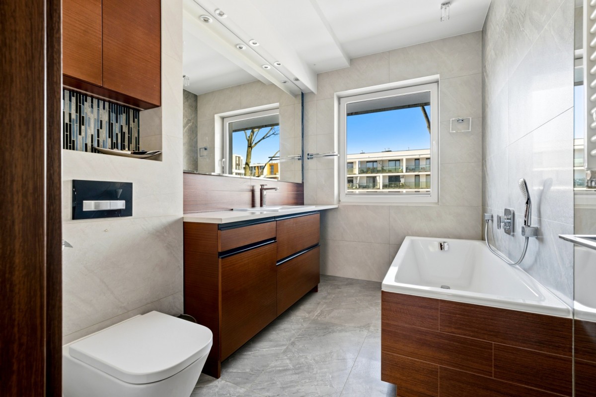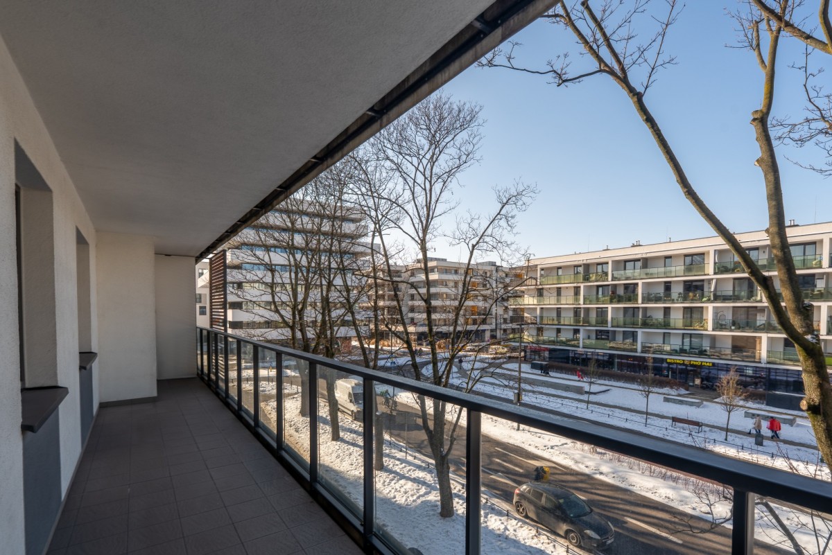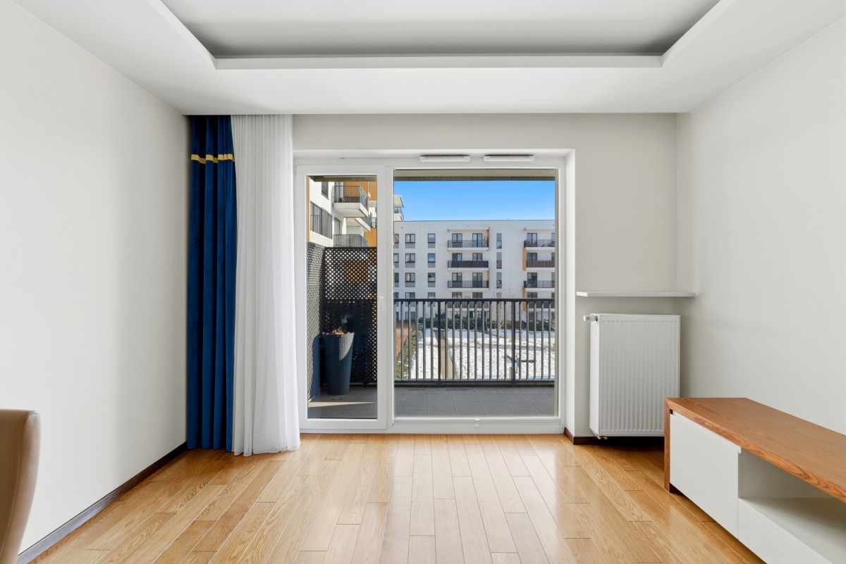 Apartament znajduje się w nowoczesnym, kameralnym budynku z windą. Teren osiedla jest ogrodzony i monitorowany.