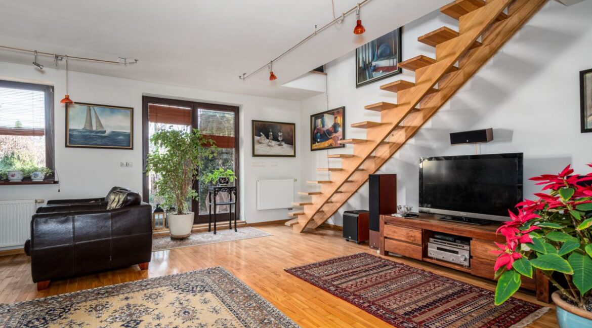 Na sprzedaż komfortowy dom w zabudowie szeregowej (segment środkowy) o powierzchni 121,83 m² położony na działce 250 m² przy ul. Eskimoskiej na zielonej i spokojnej Białołęce. Nieruchomość znajduje się na kameralnym, zamkniętym osiedlu z kontrolą dostępu. Największym atutem domu jest wyjątkowe położenie działki – ogród graniczy bezpośrednio ze strumykiem oraz naturalnym pasem zieleni, gdzie można…
