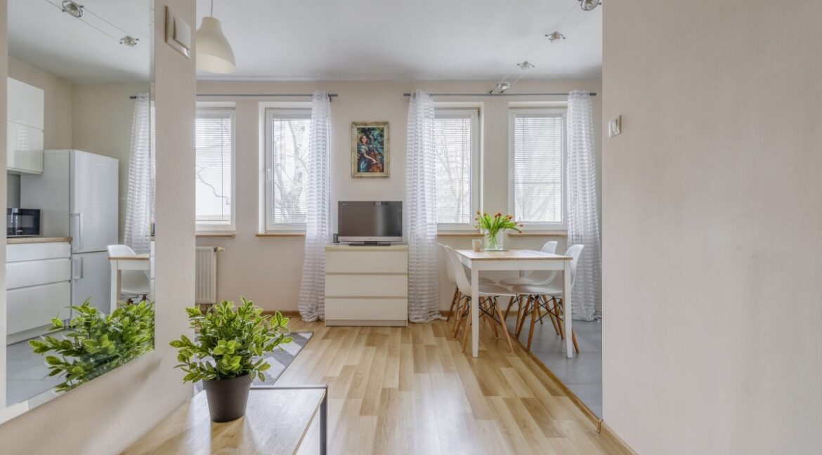 Wyjątkowe dwupokojowe mieszkanie o powierzchni 41,43 m² na trzecim piętrze zamkniętego osiedla przy ulicy Zwierzynieckiej na Mokotowie, łączące wygodę i styl w bezpiecznym, ogrodzonym kompleksie z windą i monitoringiem. Prezentowany apartament wyróżnia się jasnym, przestronnym salonem z wyjściem na balkon, skąd rozciąga się widok na zielony dziedziniec, zapewniający kameralne tło miejskiego otoczenia. W pełni wyposażona,…