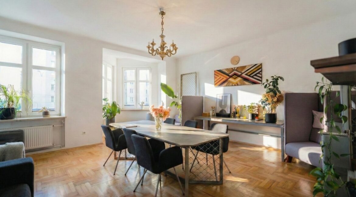 Warszawa | Ochota | Grójecka | Przestronne mieszkanie o powierzchni 146,84 m², pięć pokoi, wysokie sufity 3 m, idealne do własnej aranżacji. Pierwsze piętro, doskonałe doświetlenie, ekspozycja południowa, zachodnia i północno-wschodnia. Wnętrze:To mieszkanie ma duszę, przestrzeń i potencjał. Nieruchomość wymaga remontu, ale daje ogromne możliwości indywidualnej adaptacji. Dębowe podłogi można odświeżyć i przywrócić im naturalne…
