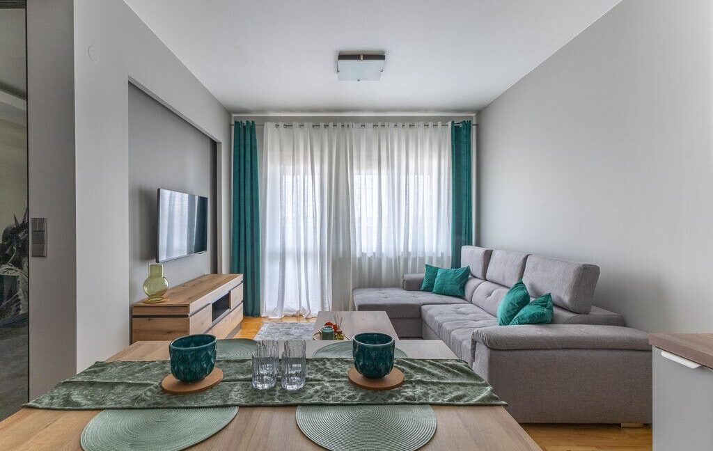 Oferuję na wynajem mieszkanie na Bielanach, o powierzchni 55 m², zaraz przy stacji metra M1 Wawrzyszew. Opis mieszkania:– Pokój dzienny – pokój z dużą rozkładaną kanapą, strefą jadalną, telewizorem i wyjściem na balkon.– Sypialnia 2 – osobny pokój, zamykany, z pojemną szafą i rozkładaną kanapą.– Sypialnia 3 – pokój mniejszy z szafą, rozkładaną kanapą i biurkiem.–…