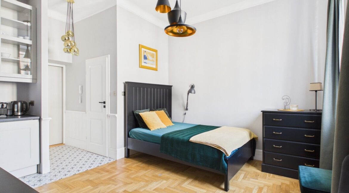 OFERTA W PRZYGOTOWANIU ! Cicha i stylowa kawalerka w samym centrum Warszawy przy ul. Górskiego. Położona w zadbanej kamienicy, z wysokimi sufitami i widokiem na zieleń. Do stacji metra Nowy Świat tylko 4 min. pieszo. Duże wygodne łóżko, komoda, stolik kawowy, fotel, stół z dwoma krzesłami. Telewizor z kanałami satelitarnymi. Aneks kuchenny wyposażony w lodówkę,…