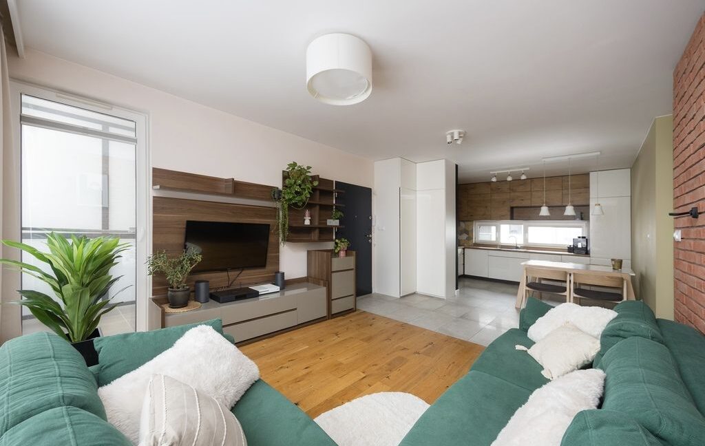 Gotowe do zamieszkania, urządzone w wysokim standardzie, trzypokojowe mieszkanie na pierwszym piętrze w dwupiętrowym nowoczesnym budynku z 2018 roku. Mieszkanie usytuowane jest na warszawskiej Białołęce przy ul. Sprawnej 7B SZCZEGÓŁY: Mieszkanie o łącznej powierzchni 64,62 m2 składa się z następujących pomieszczeń:– salon wypoczynkowy z częścią telewizyjną (ok. 22,36m2), – otwarta kuchnia z jadalną (ok. 12,44m2),…
