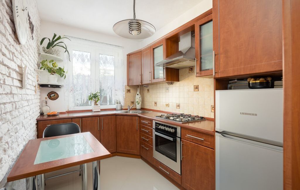 Na sprzedaż dwupokojowe mieszkanie na warszawskim Grochowie, ulica Chrzanowskiego. Niska zabudowa, zadbany blok z lat 50-tych XX wieku, czyste klatki schodowe, nie ma wind.Lokal po przeprowadzonym 10 lat temu remoncie, teraz wymaga odświeżenia. Wymieniono wówczas okna, podłogi, urządzono nową kuchnię i łazienkę. Aneks kuchenny jest częścią większego pokoju, na wyposażeniu płyta gazowa, piekarnik i zmywarka, w…