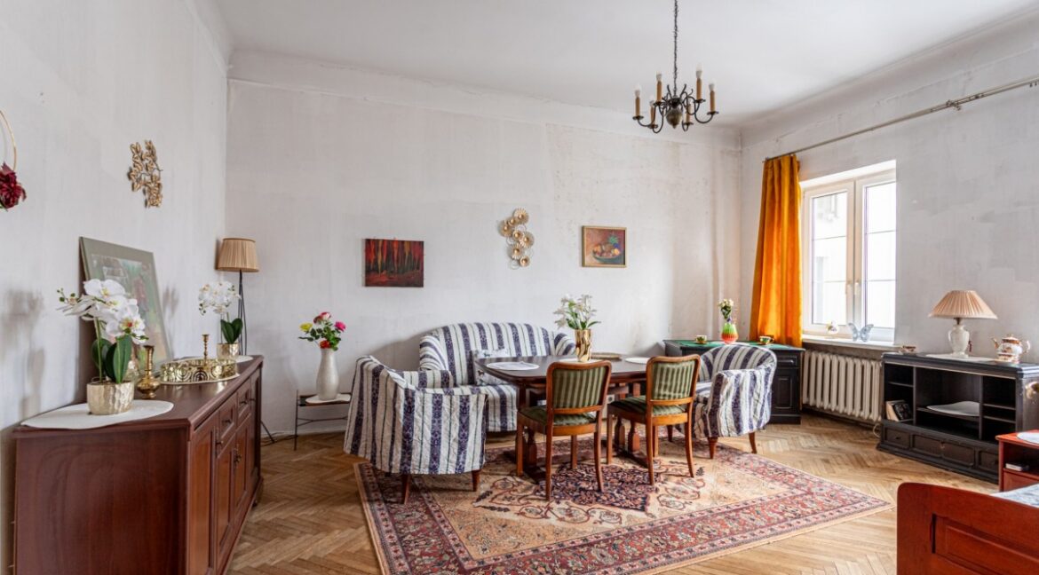 Mieszkanie o powierzchni 64 m² znajduje się na 2 piętrze kameralnej kamienicy (bez windy) i wyróżnia się wyjątkowym klimatem oraz widokiem na zielony, wewnętrzny dziedziniec, zapewniający ciszę i prywatność w samym sercu miasta. Układ lokalu obejmuje: przestronny salon z miejscem do wypoczynku i jadalni, oddzielną, jasną kuchnię z oknem, sypialnię z widokiem na dziedziniec, łazienkę z…