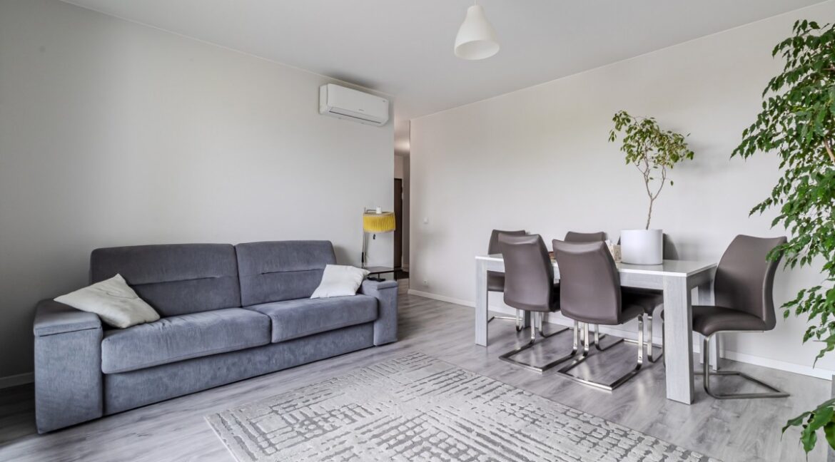 Do sprzedania przytulne i nowocześnie umeblowane dwupokojowe mieszkanie na nowym osiedluw Ursusie – Szamotach. Lokal o powierzchni 44,95 m2 mieści się na piątym piętrze (budynek z windą)i składa się z salonu z otwartą kuchnią przedzieloną miejscem do pracy lub spożywania posiłków, sypialni, przedpokoju oraz łazienki z wc. Mieszkanie, dotychczas jeszcze nigdy nie wynajmowane, posiada klimatyzację…