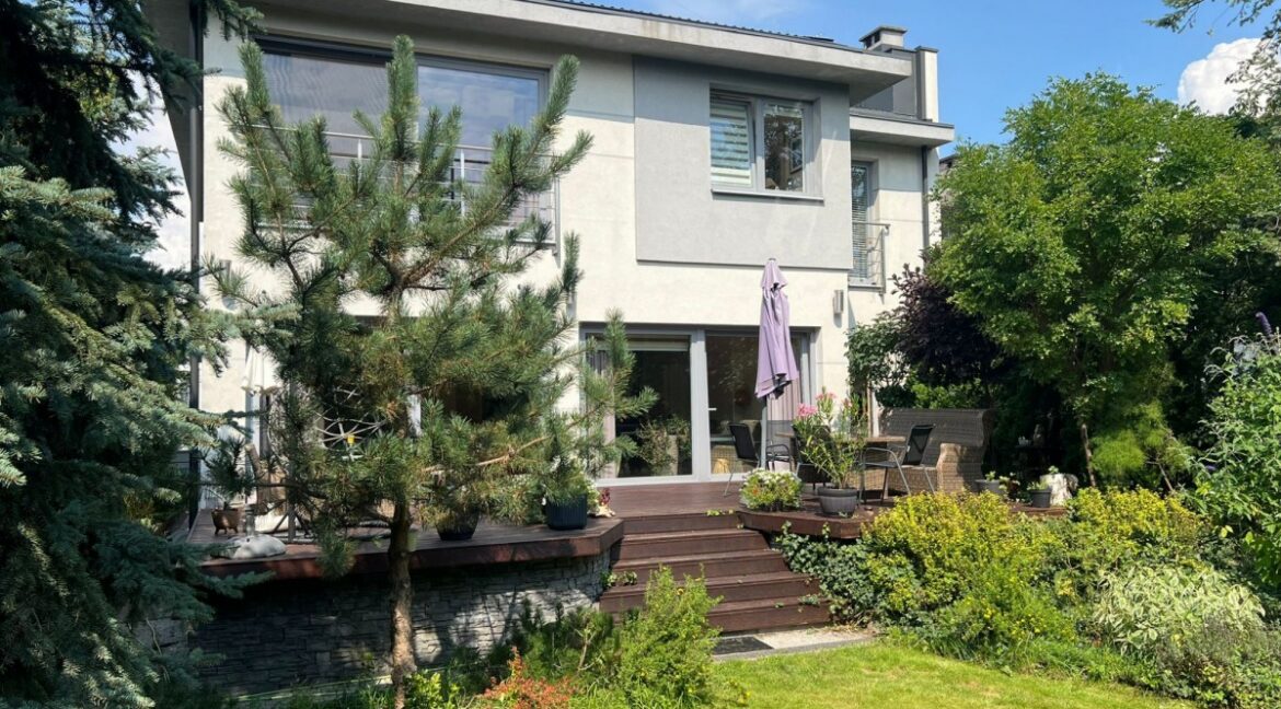 Nowoczesny bliźniak z jacuzzi, kinem domowym i ogrodem. Rozkład: ok. 200 m² powierzchni użytkowej Nowy, wykończony w 2024 roku Gotowy do zamieszkania – bez nakładów finansowych 3 poziomy: parter, piętro, poddasze użytkowe 3 łazienki, w tym prywatna w sypialni master Ogród z jacuzzi i strefą relaksu Taras na poddaszu Atuty nieruchomości: Kino domowe klasy premium (ekran 120”,…