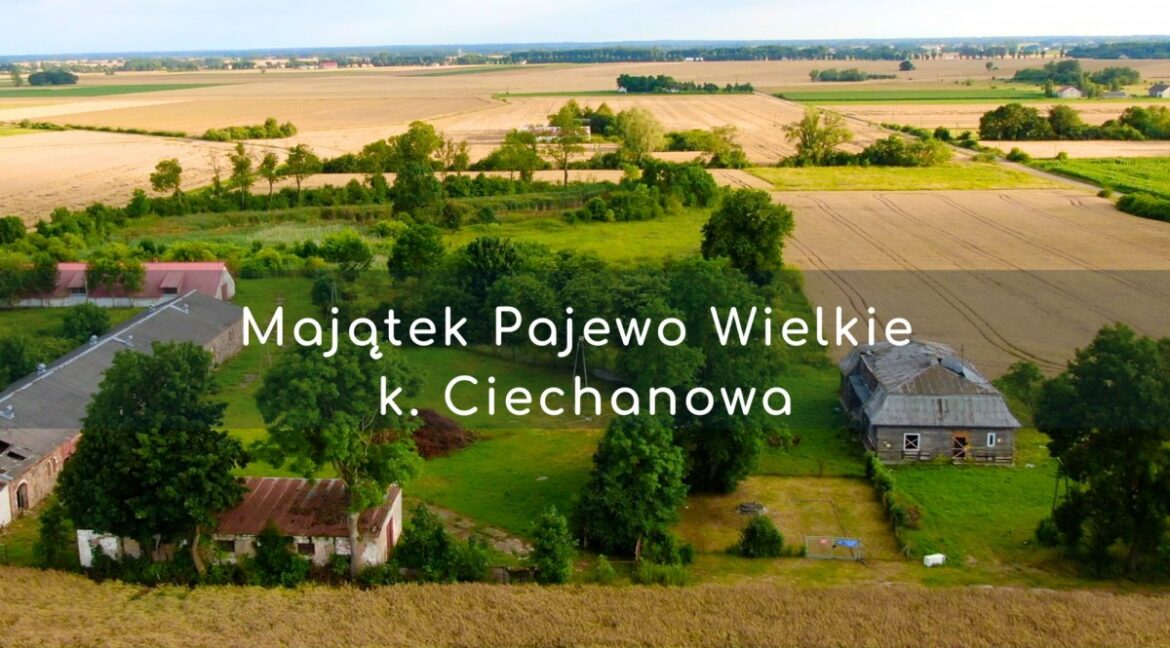 Majątek Pajewo Wielkie Lokalizacja:• Pajewo Wielkie gm. Gołymin-Ośrodek pow. Ciechanów• Ciechanów (12 km), Przasnysz (20 km), Opinogóra (10 km), Warszawa (80 km)• bezpośredni dostęp do dróg z trzech stron: od N (utwardzona), E i W (asfaltowe) Działka:• 6,8 ha ziemi rolnej• klasy gleb: IIIb-IVa; użytki: R, Br, PS, Lzr, N• staw rybny• pozostałość po parku dworskim• sad• pokłady…