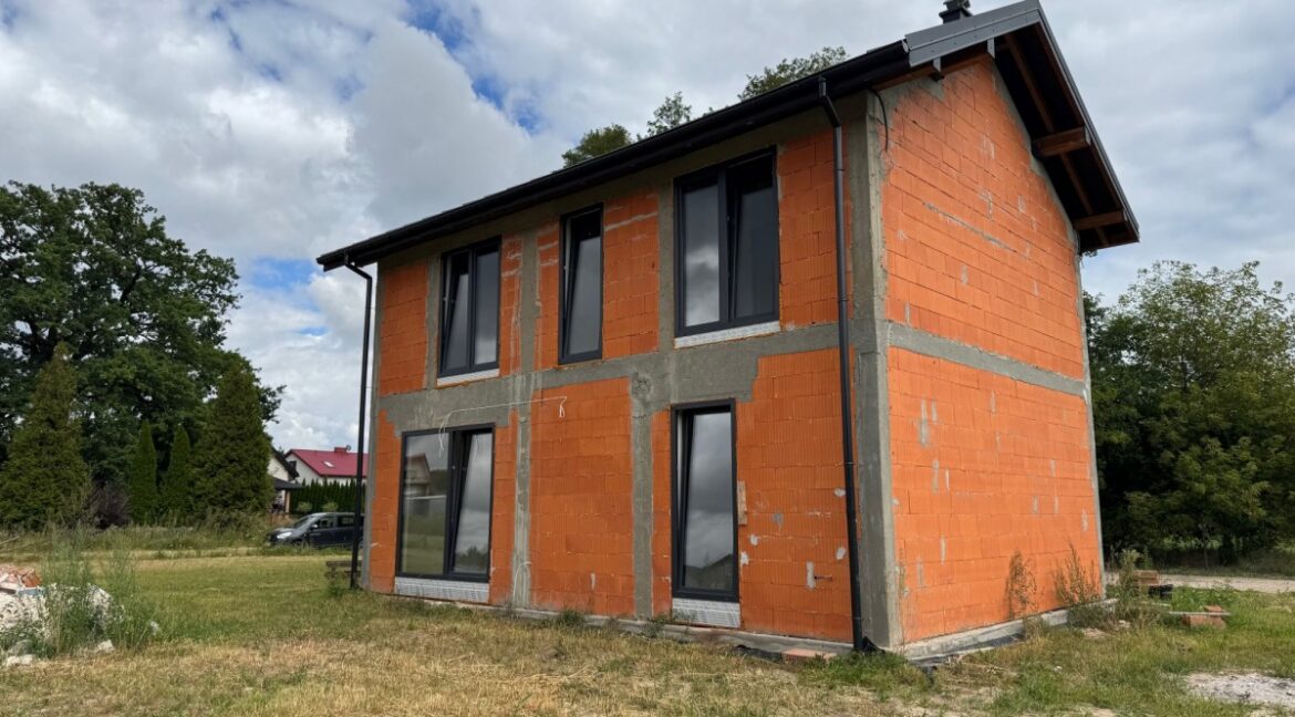 Stare Załubice – nowy dom wolnostojący o powierzchni użytkowej 103m2 – tylko 30km od Warszawy, nad rozlewiskiem rzeki Rządzy (przy Zalewie Zegrzyńskim). Działka 1210m2 – (prawie kwadrat) PARTER:salon z jadalnią 21,95m2kuchnia 6,24m2Spiżarnia 1,35m2gabinet/sypialnia 7,51m2łazienka 3,57m2hall 4,75m2 PIĘTRO:4 sypialnie (7,57/9,37/ 9,42/11,89m2)łazienka 5,25m2 Doskonały dom dla większej rodziny. obecnie stan surowy zamknięty – doskonały etap do podjęcia…